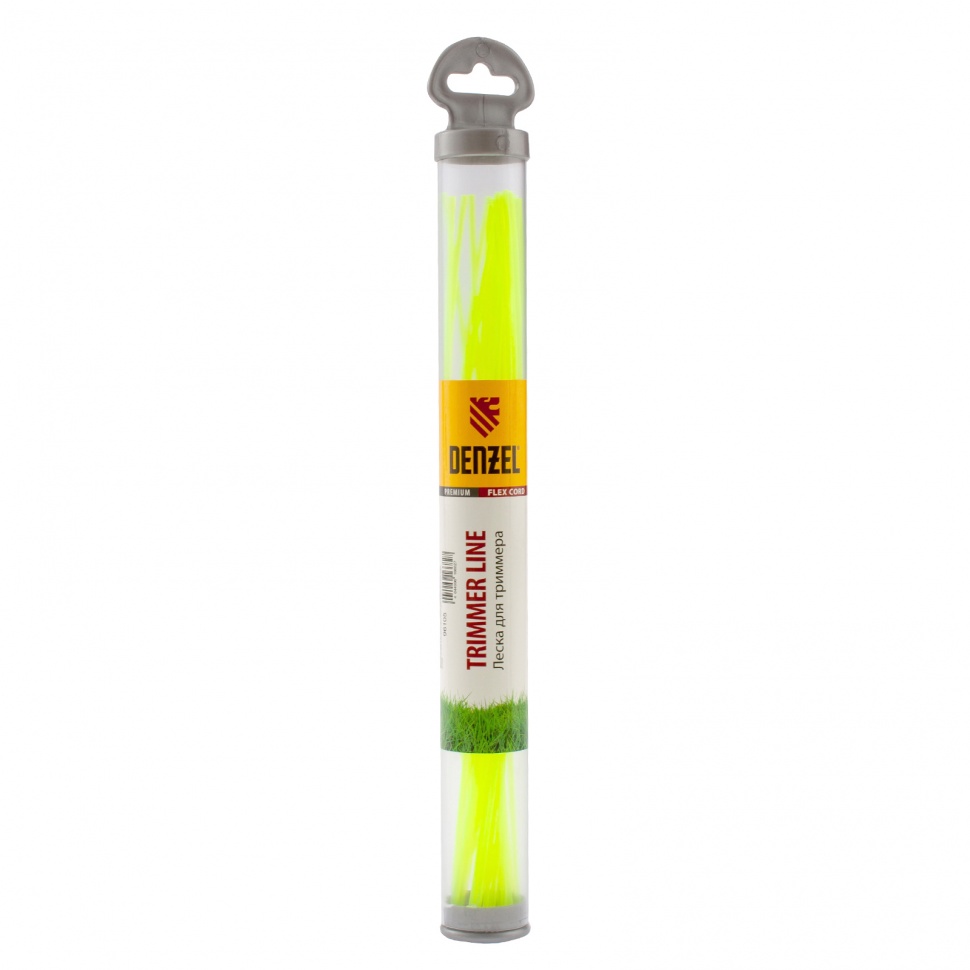 Круглая нарезанная леска для триммера Denzel FLEX CORD 96105 диаметром 2,4 мм и длиной 30 см, 20 шт. в тубусе, заправляется в триммерную головку и используется для скашивания газонной или густой травы, а также сорняков с толстыми стеблями. Подходит для электротриммеров мощностью 1-1,4 кВт и бензотриммеров.