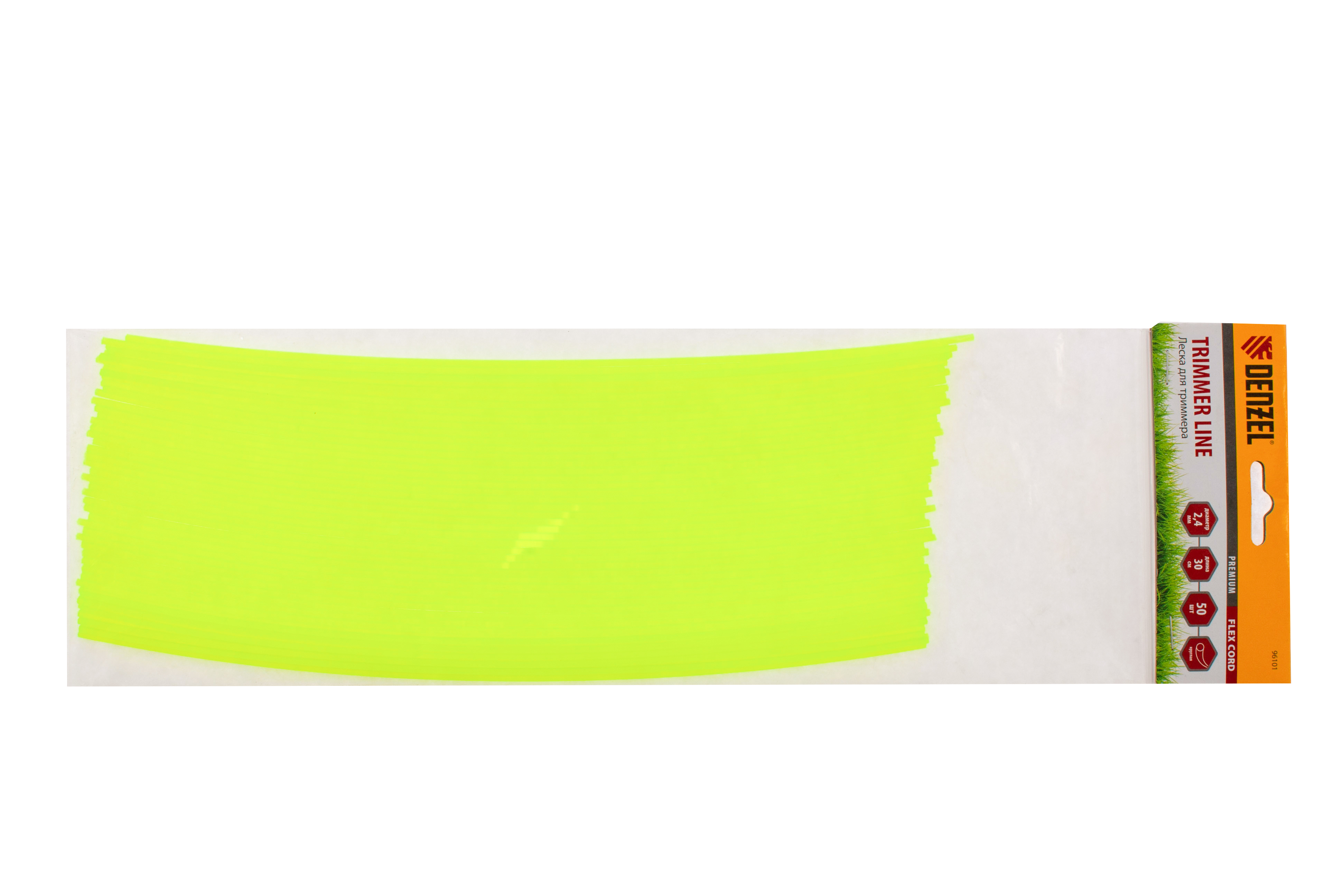 Круглая нарезанная леска для триммера Denzel FLEX CORD 96101 диаметром 2,4 мм и длиной 30 см поставляется упаковками по 50 шт., заправляется в триммерную головку и предназначена для срезания растительности. Используется для скашивания газонной или густой травы, а также сорняков с толстыми стеблями. Подходит для электротриммеров мощностью 1-1,4 кВт и бензотриммеров.