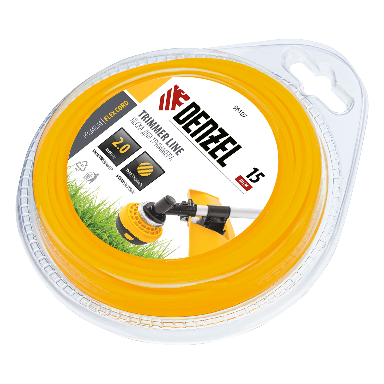 Круглая леска для триммера Denzel FLEX CORD 96107 диаметром 2 мм и длиной 15 м поставляется в блистере и предназначена для скашивания газонной травы и небольших сорняков. Она используется на электротриммерах мощностью 1-1,4 кВт и бензотриммерах.