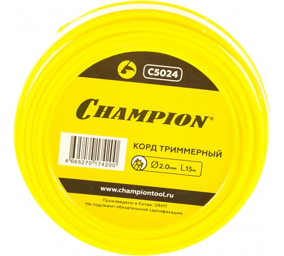 Корд Star 2.0мм* 15м CHAMPION C5024 является расходным материалом к триммерам всех моделей. Корд имеет сечение - звездочка, и благодаря острым граням легко справляется даже с жесткой травой, а также снижает тормозящее действие на двигатель.